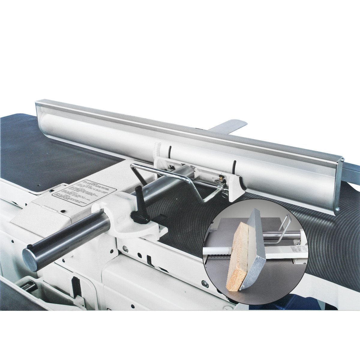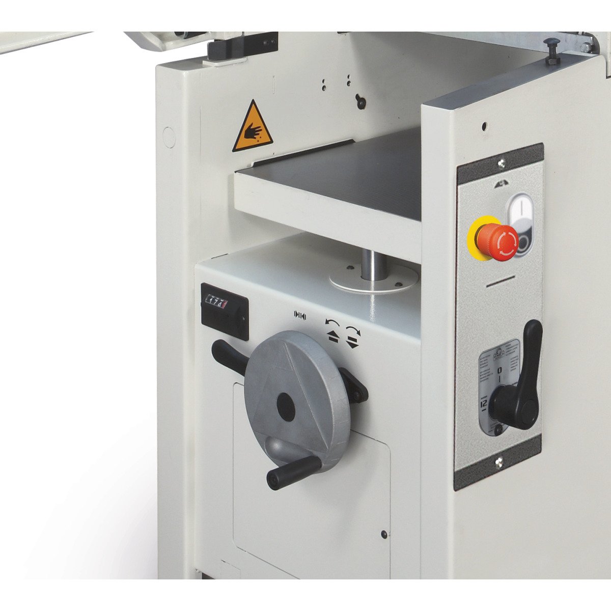 - Dickentischverstellung über Handrad mit numerischer Anzeige für die Hobelhöhe