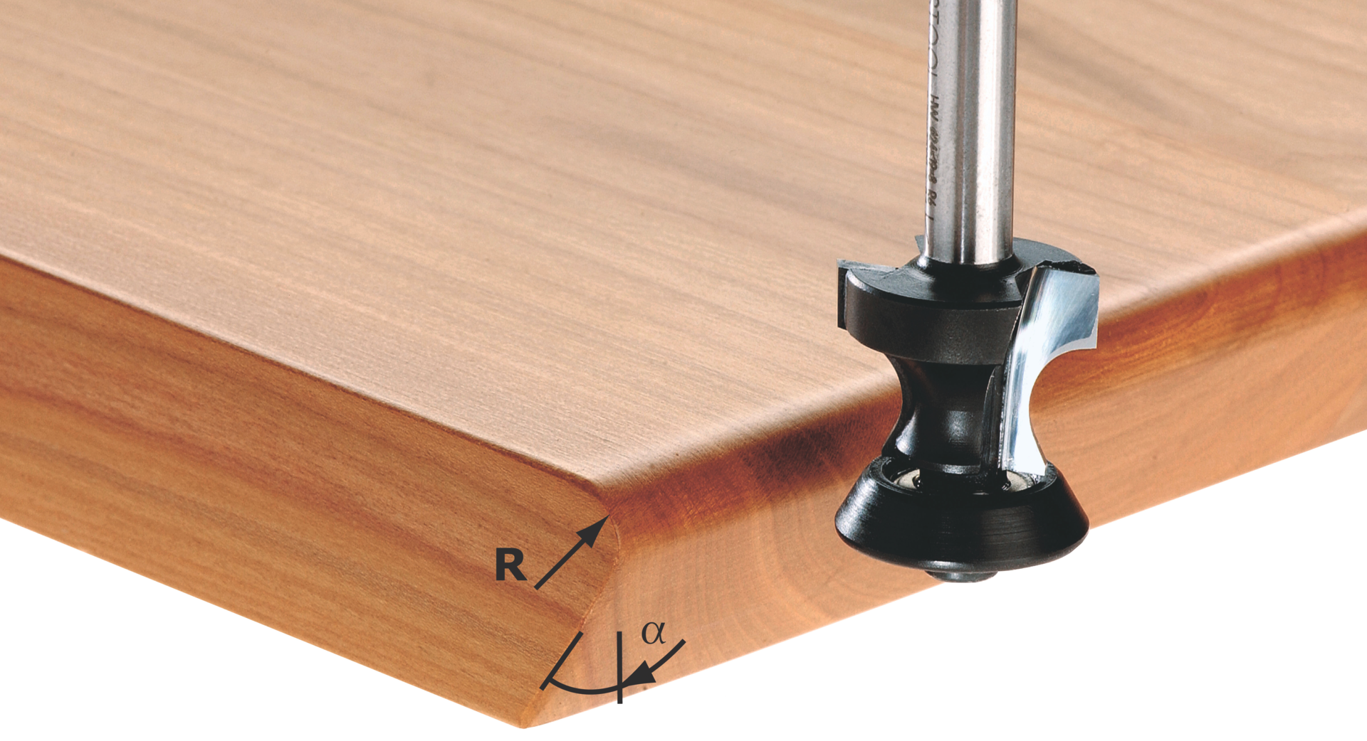 | Einsatz: | mit diesen Schaftfräsern kann die aus der Industrie bekannte Kantenform auch mit einer Handoberfräse erzeugt werden, dabei arbeiten der Fasefräser und der Abrund-Fasefräser mit konischem Kugellager perfekt zusammen |