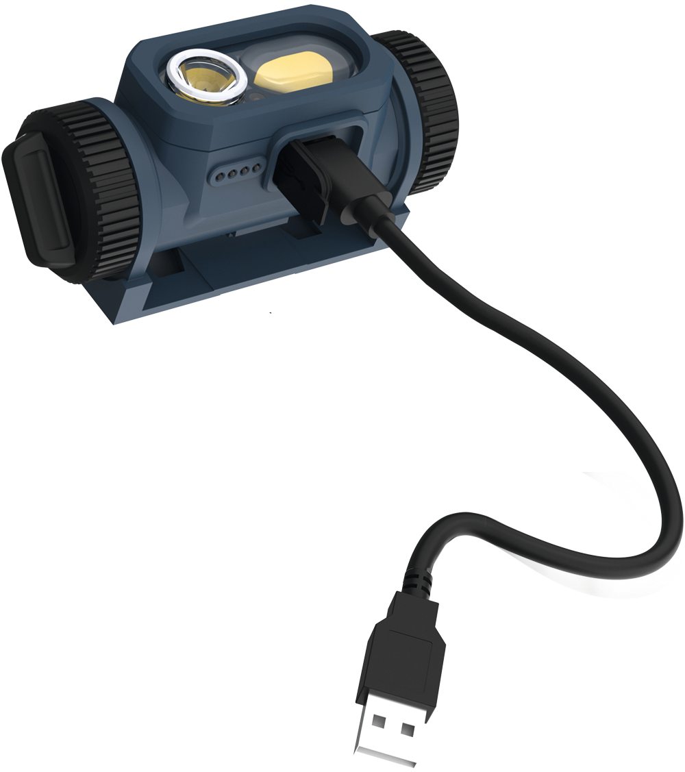 Kopflampe mit Li-Ionen-Akku USB-C 3,65 V/2,6 Ah, 3 selbstklebende Montageplatten und Ladekabel