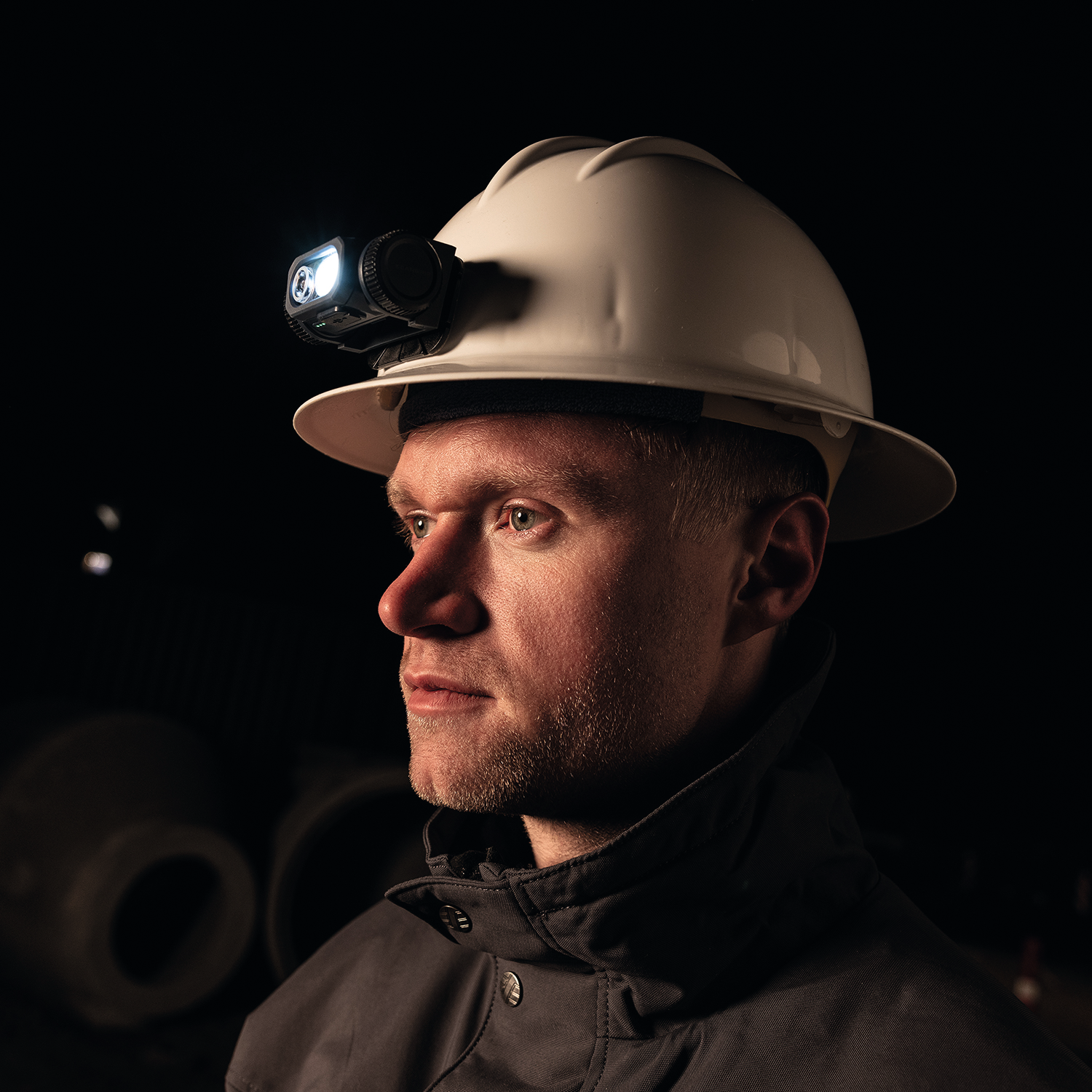Akku-Kopflampe LED "HORIZON" 150 Lumen IP54 für Montage am Schutzhelm