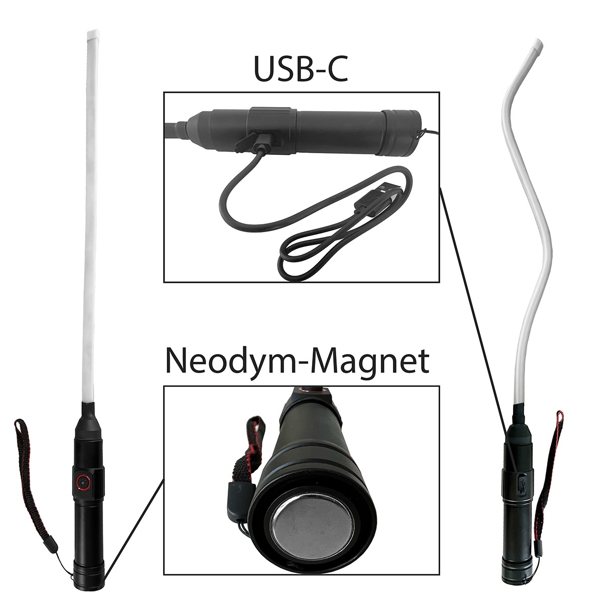 Stablampe mit Li-Ionen-Akku 3,7 V/2,2 Ah, Ladekabel USB-A zu USB-C und Magnet