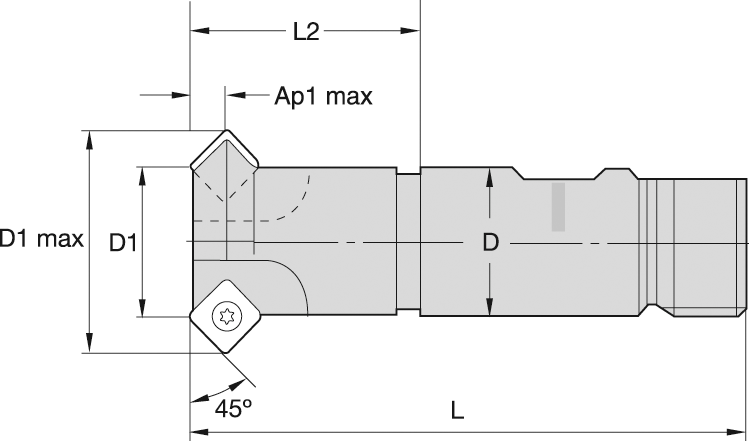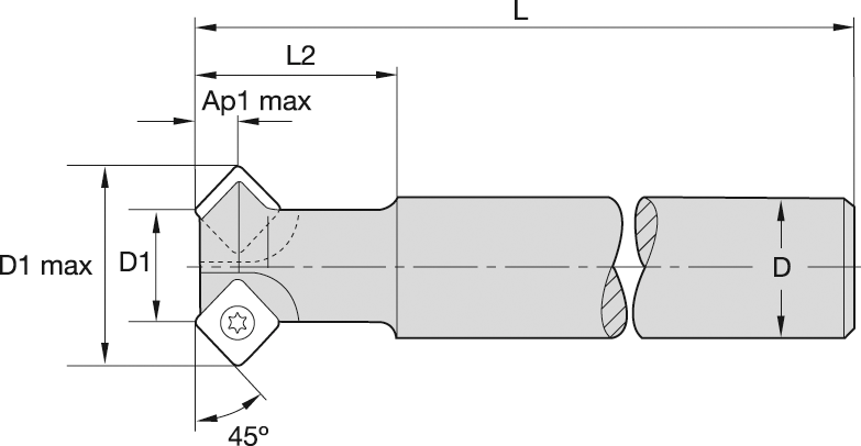 Aufsteck-Fasfräser "M25" 45° Z3 Zylinderschaft lang für WSP SD..0903.. D32mm