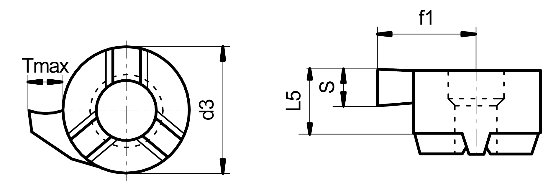 | Position | Code | f1 (mm) | für Größe | Nut (mm) | L5 (mm) | S (mm) | d3 (mm) | Tmax (mm) | Anzahl | VE | Preis/VE | |||