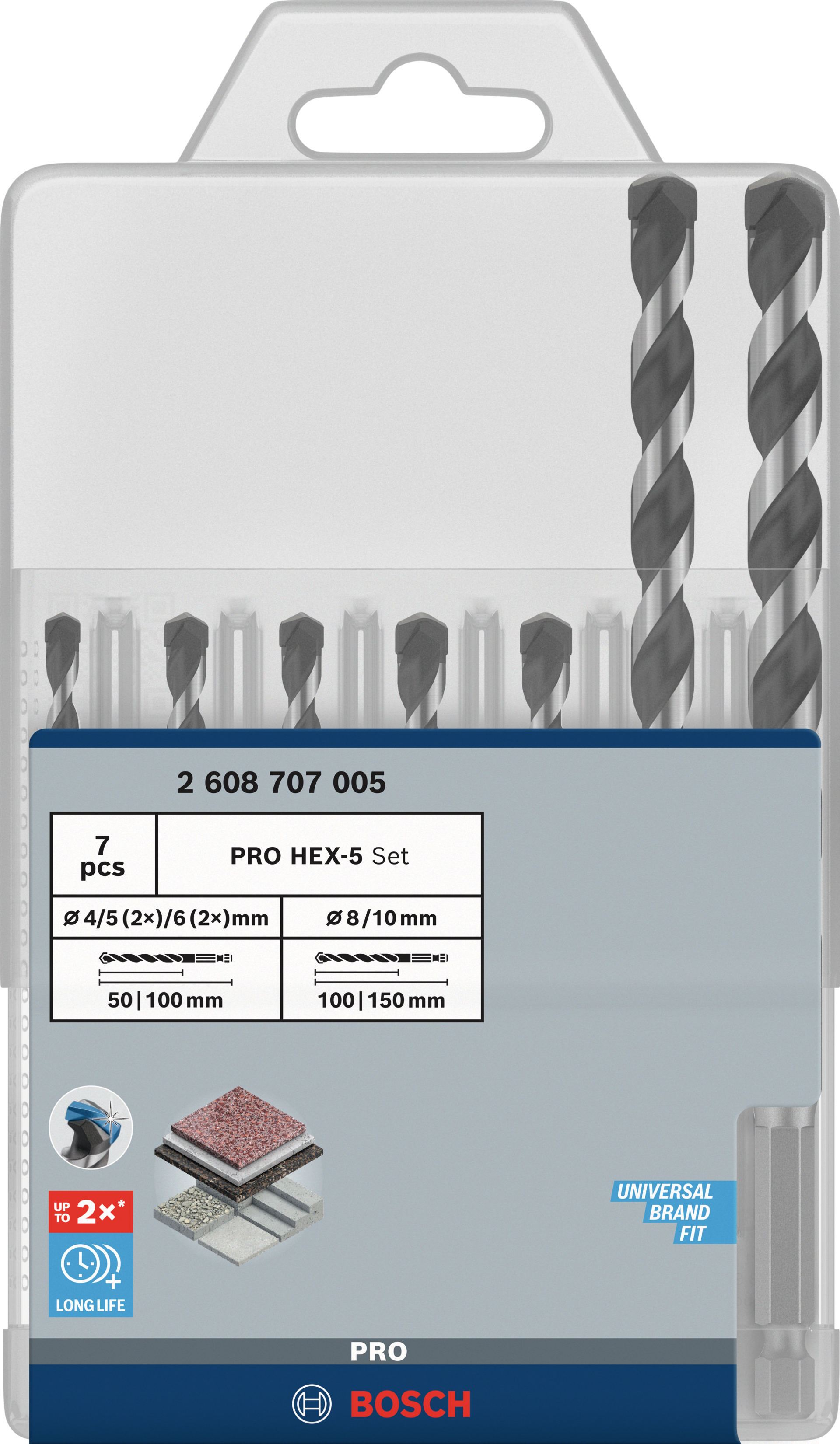 Betonbohrer Satz "HEX-5" Expert 7-tlg. 4-5-5-6-6-8-10mm