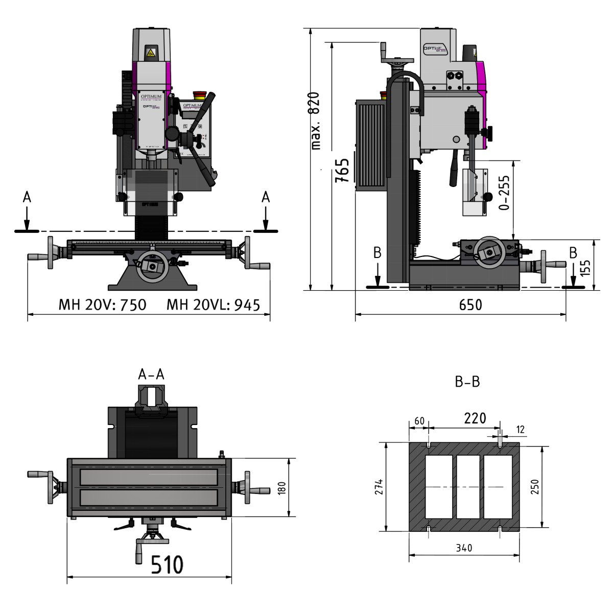Bohr-Fräsmaschine Optimum OPTImill MH 20V