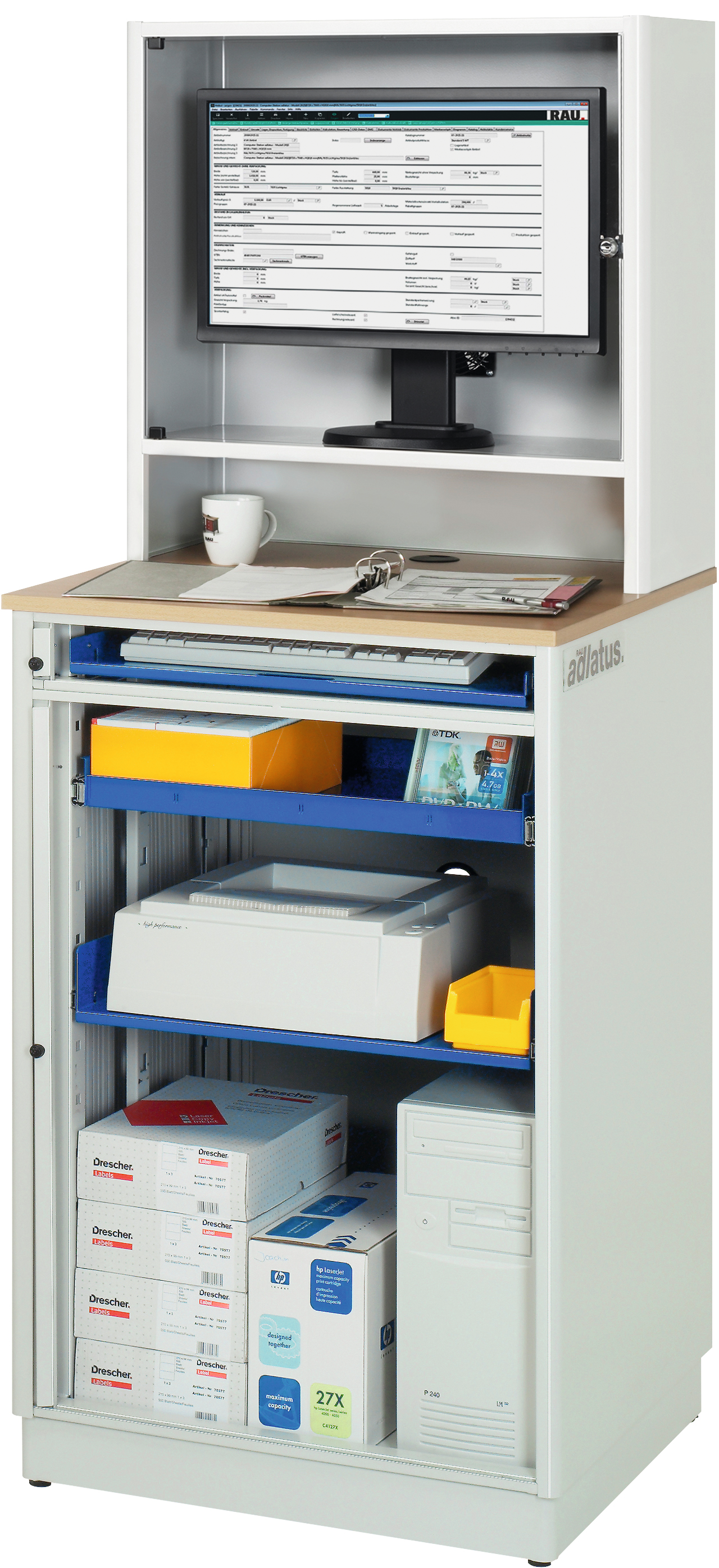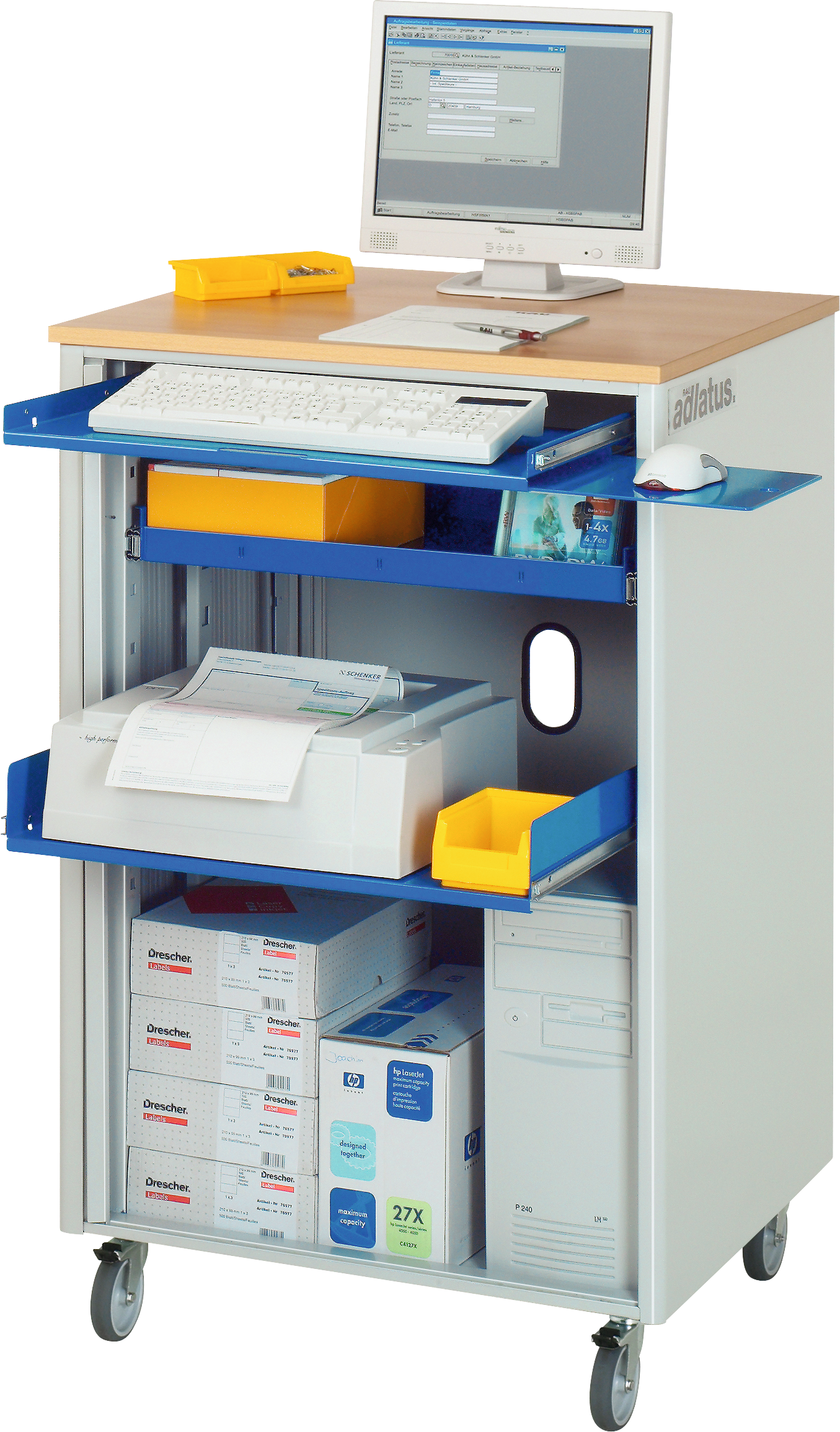 Computer-Station Midi RAL7035/5010 B720 x T660 x H1810mm mobil