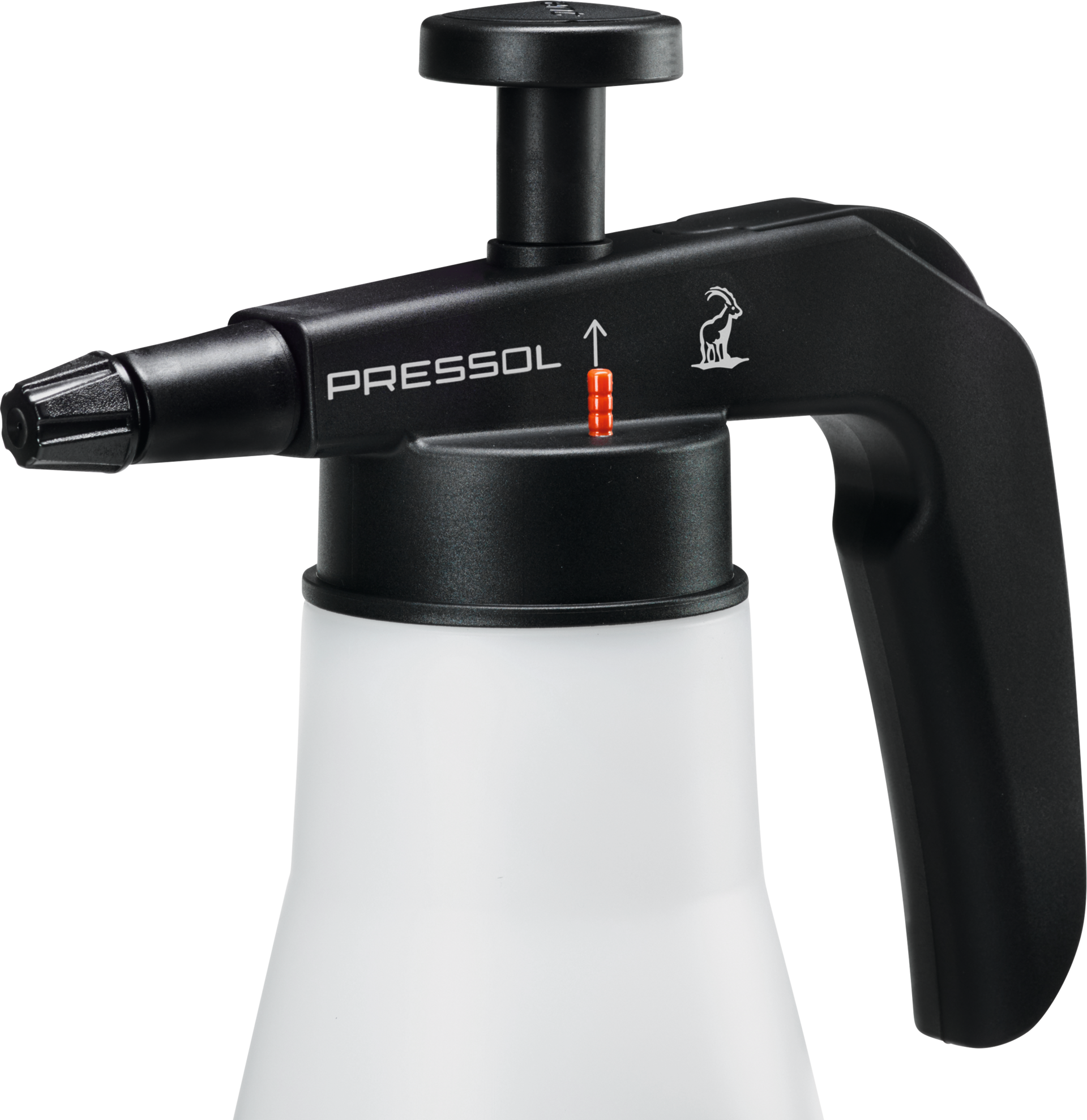 mit hochwertiger Viton-Dichtung FKM, integriertem Sicherheits- und Druckentlastungsventil, kraftvolles Pumpwerk, gut sichtbare Skala zur Füllstandskontrolle, Farbkennzeichnung am Pumpenkopf zur eindeutigen Medienzuordnung, ergonomischer Handgriff