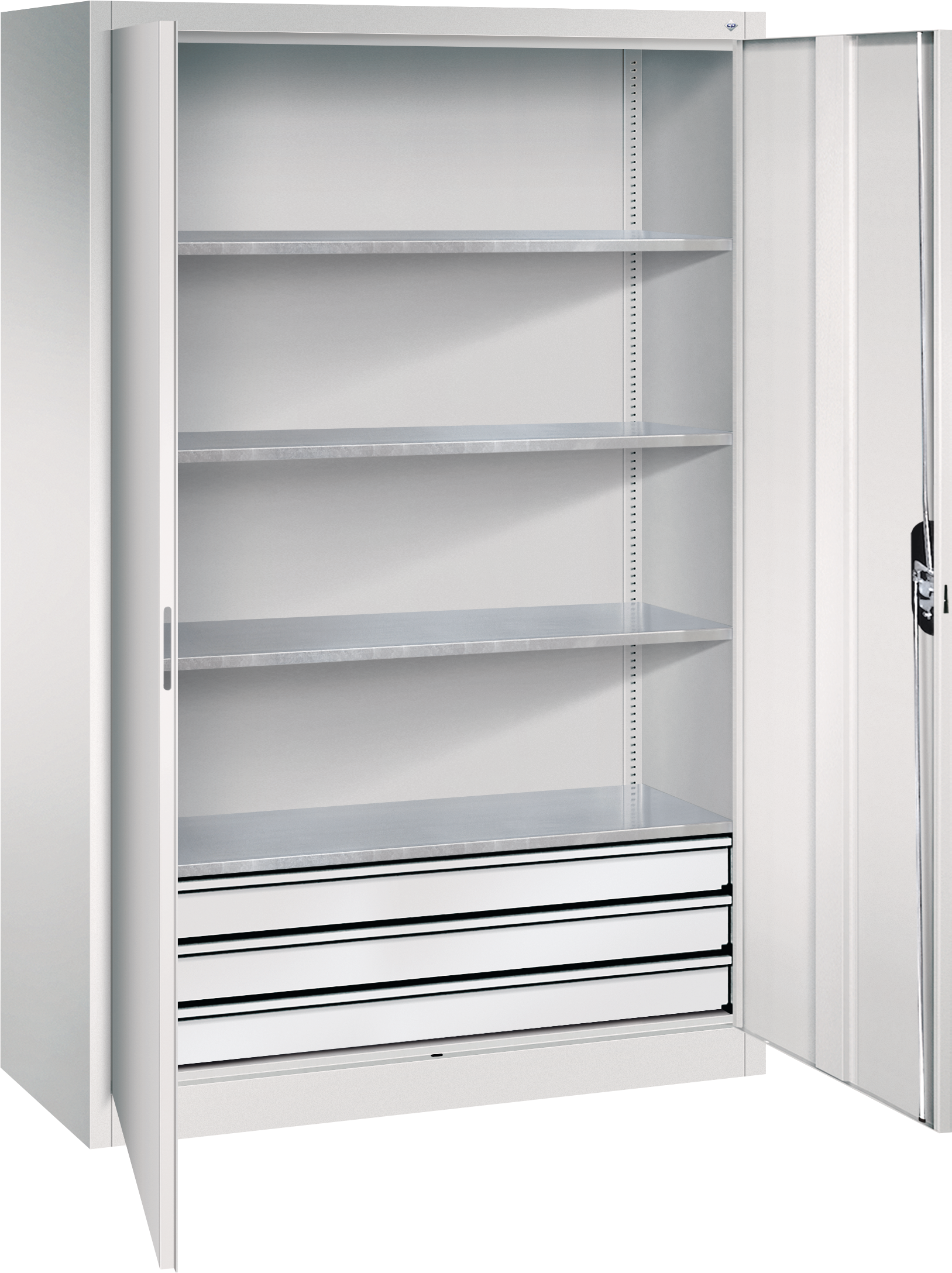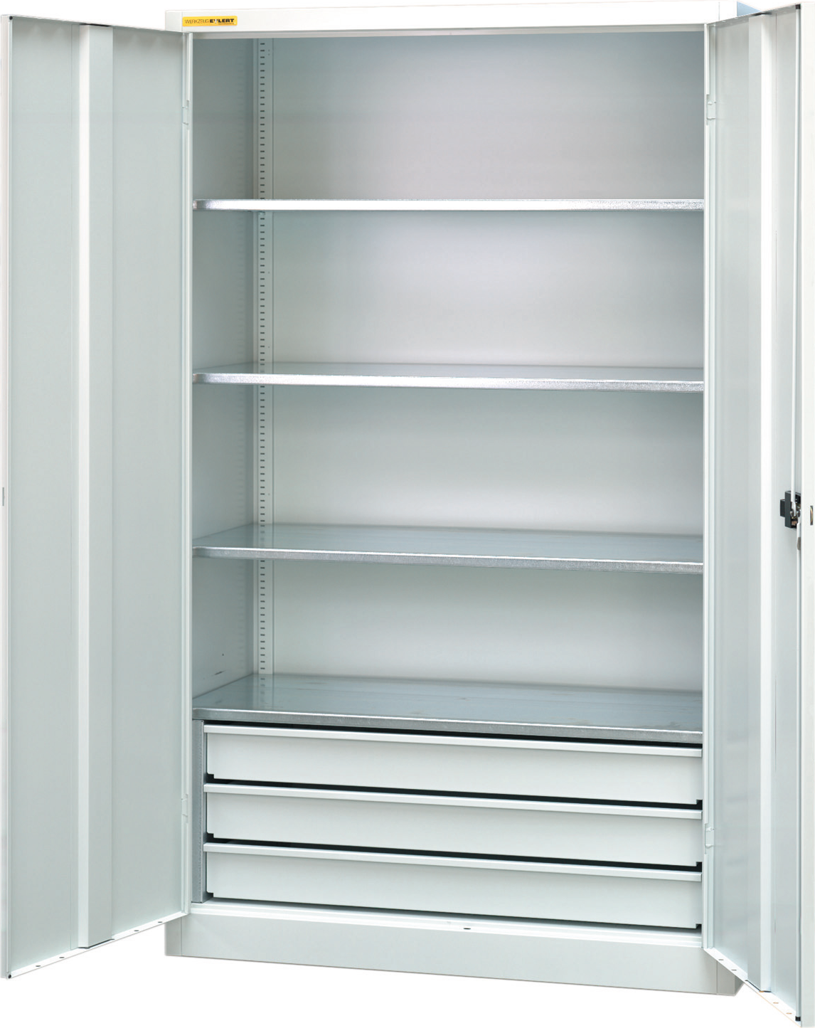 Flügeltürenschrank Schubladen RAL7035 B1200 x T500 x H1950mm