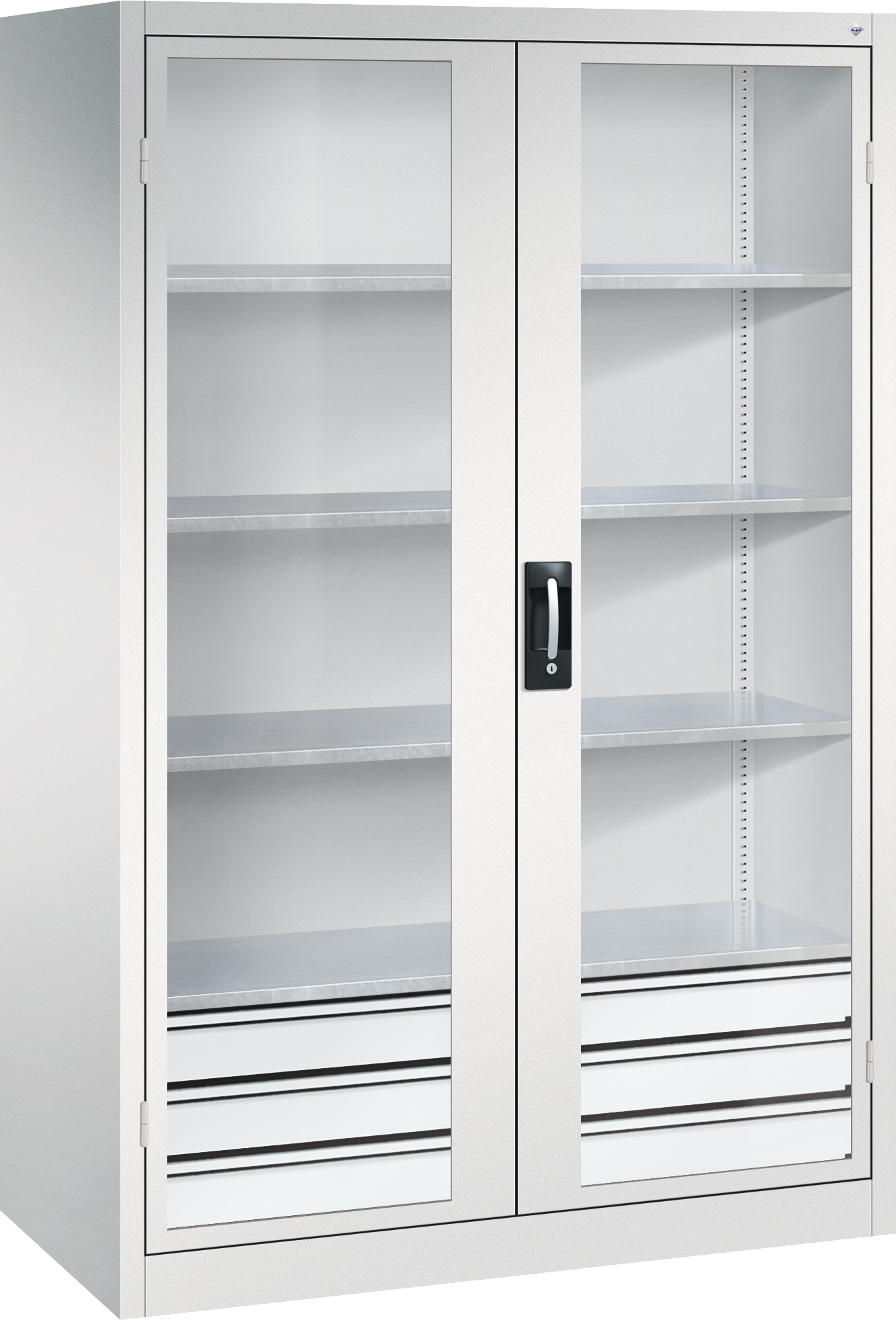 Flügeltürenschrank Sichtfenster und Schubladen B1200 x H1950 x T600mm
