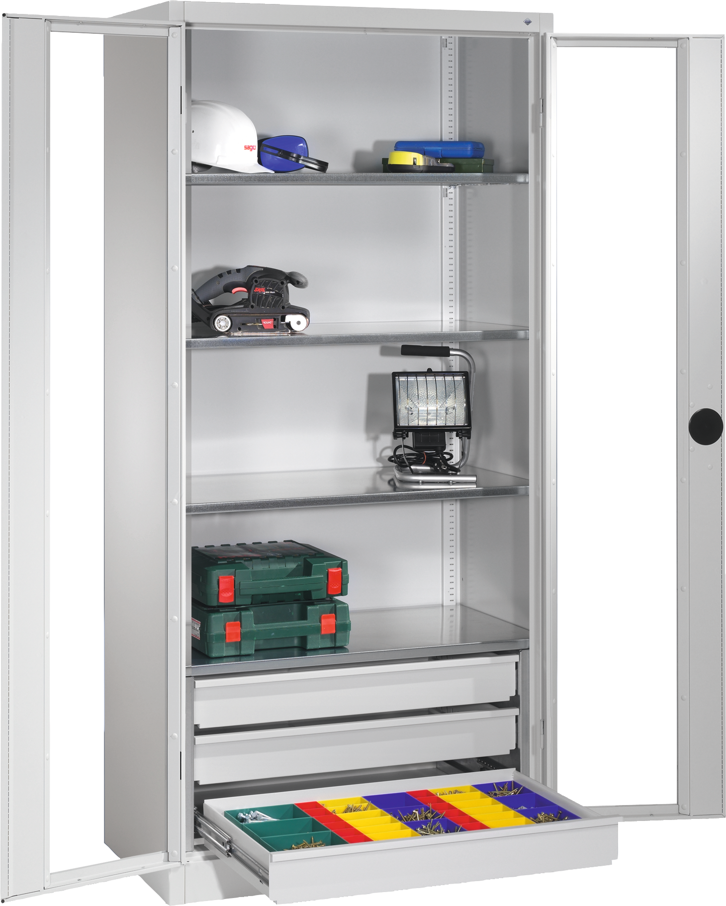 Flügeltürenschrank Sichtfenster und Schubladen B930 x H1950 x T500mm