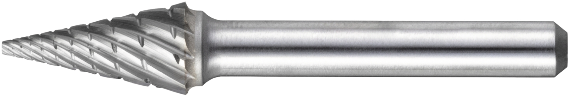 Frässtift HM VA/Stahl-Verzahnung Schaft 6mm Spitzkegelform SKM D6mm L18mm
