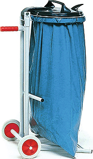 Stahlrohr-Konstruktion, pulverbeschichtet, PVC-Deckel und Klemmring für 120 Liter Säcke, Öffnungsdurchmesser 340 mm, fahrbare Ausführung mit Vollgummirädern 150 mm