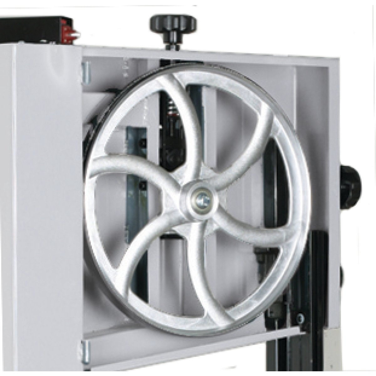 - Sägebandschnellspannung über Exzenterhebel auf der Maschinenrückseite