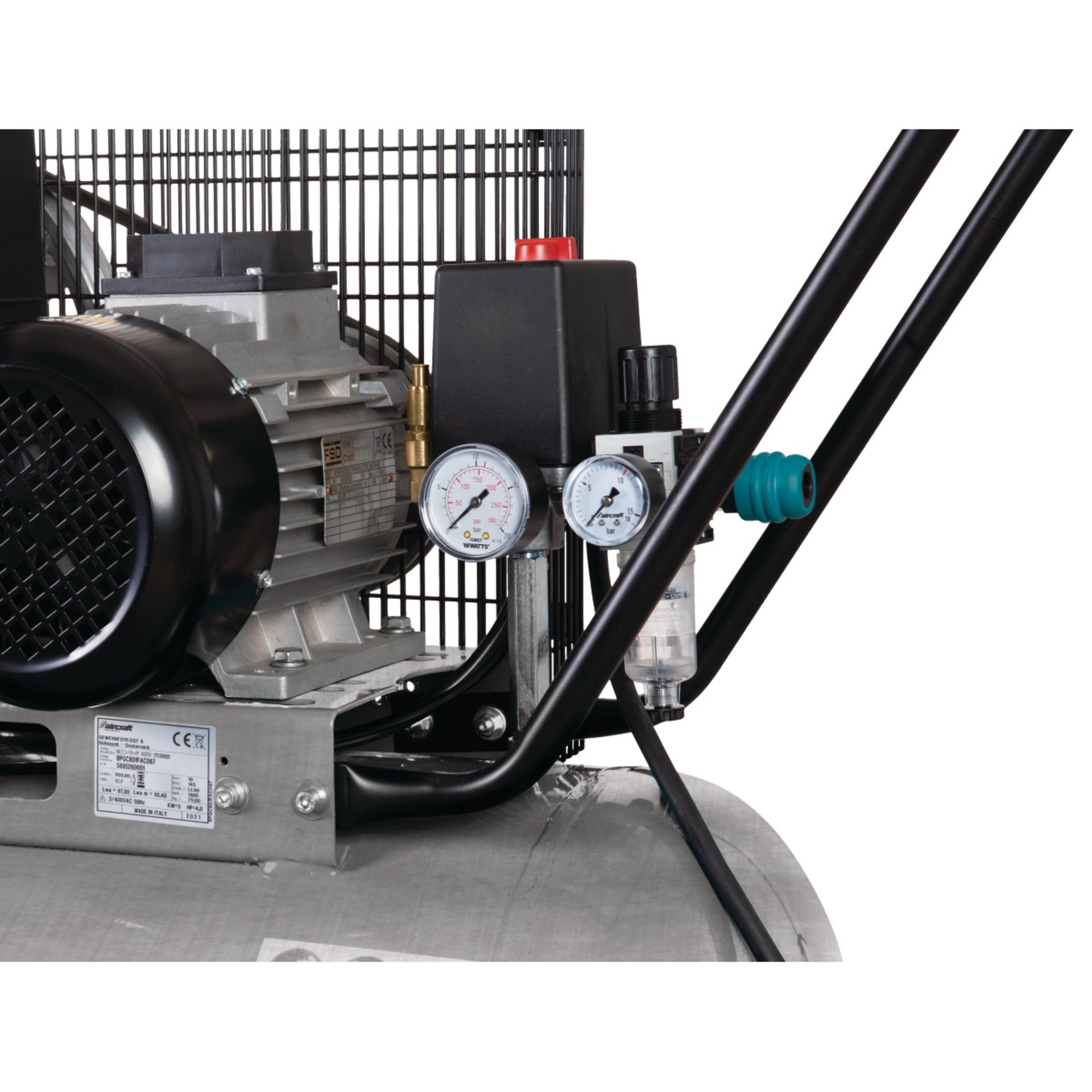 - Anlaufkondensator und Anlaufentlastungsventil sichern einen leichten Anlauf bei 230 Volt-Modellen