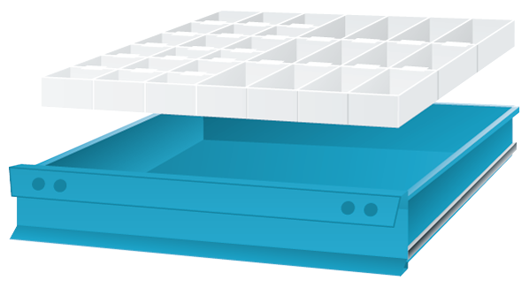 | Einsatz: | für Schubladenschränke und Werkbänke mit Gehäusetiefe 695 mm, die Breite 605 mm ist passend für alle Werkbänke, Kästen sind einzeln entnehmbar |