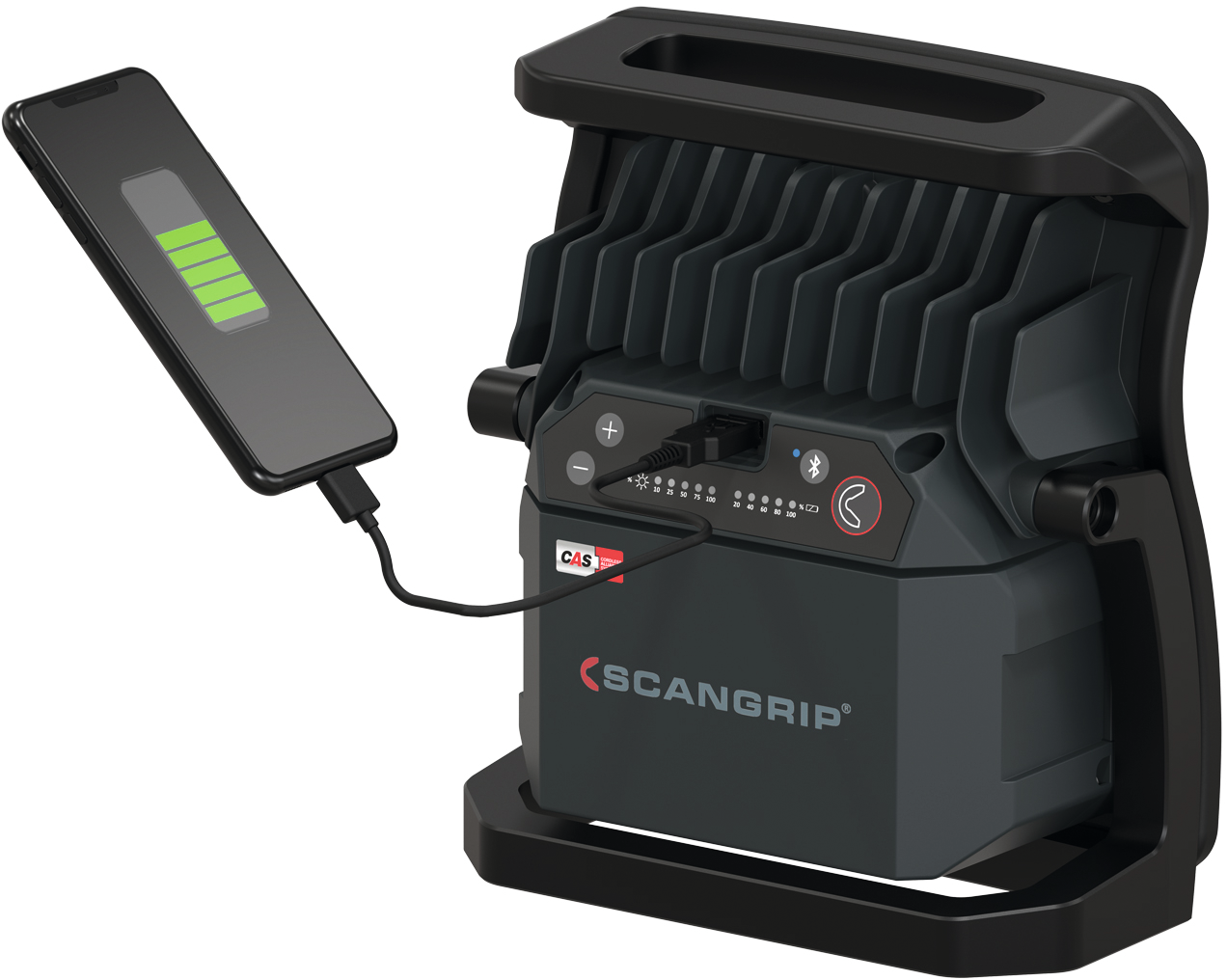 unzerbrechlich und schlagfest, eingebaute Powerbank zum Aufladen von mobilen Einheiten, robustes Alugehäuse und Gummischutzrahmen, der flexible Ständer ermöglicht die Lampe im optimalen Beleuchtungswinkel aufzustellen oder als Hängelampe zu benutzen, Betrieb wahlweise mit Akku 12-18 V Metabo/CAS-System oder mit Scangrip-Stromversorgung (beides nicht im Lieferumfang enthalten), mit Ladestand- und Lichtleistungsanzeige, Bluetooth®-Lichtsteuerungs-App, durch integrierten Reserveakku bleibt die Lampe NOVA 4 CAS 2,5 Stunden mit 400 Lumen und NOVA 10 CAS 1 Stunde mit 1000 Lumen in Betrieb - ohne Akku und ohne Netzkabel, Dimmfunktion in 5 Stufen (100 %, 75 %, 50 %, 25 % und 10 %)