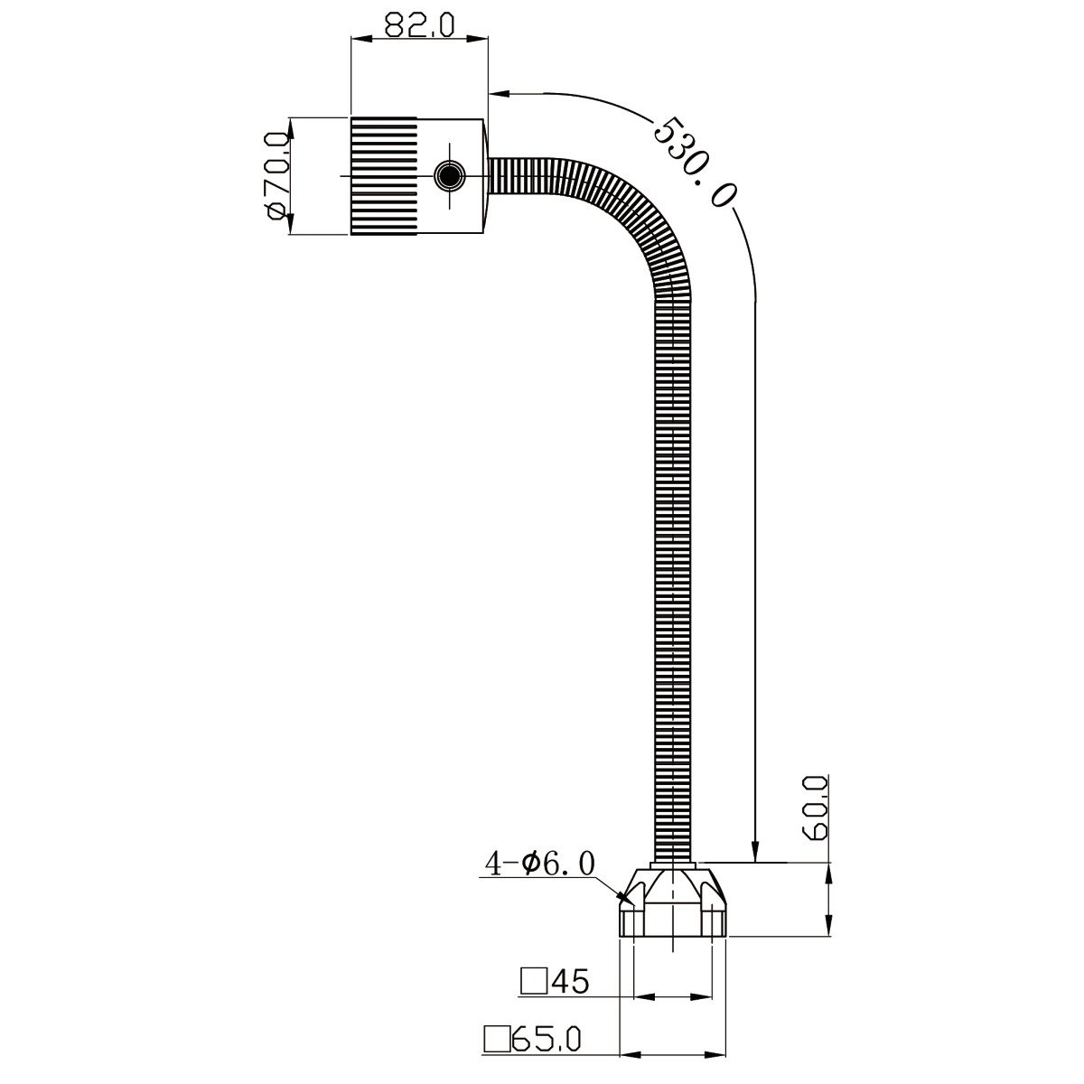 - Ummantelter, stabiler Flexschlauch-Arm