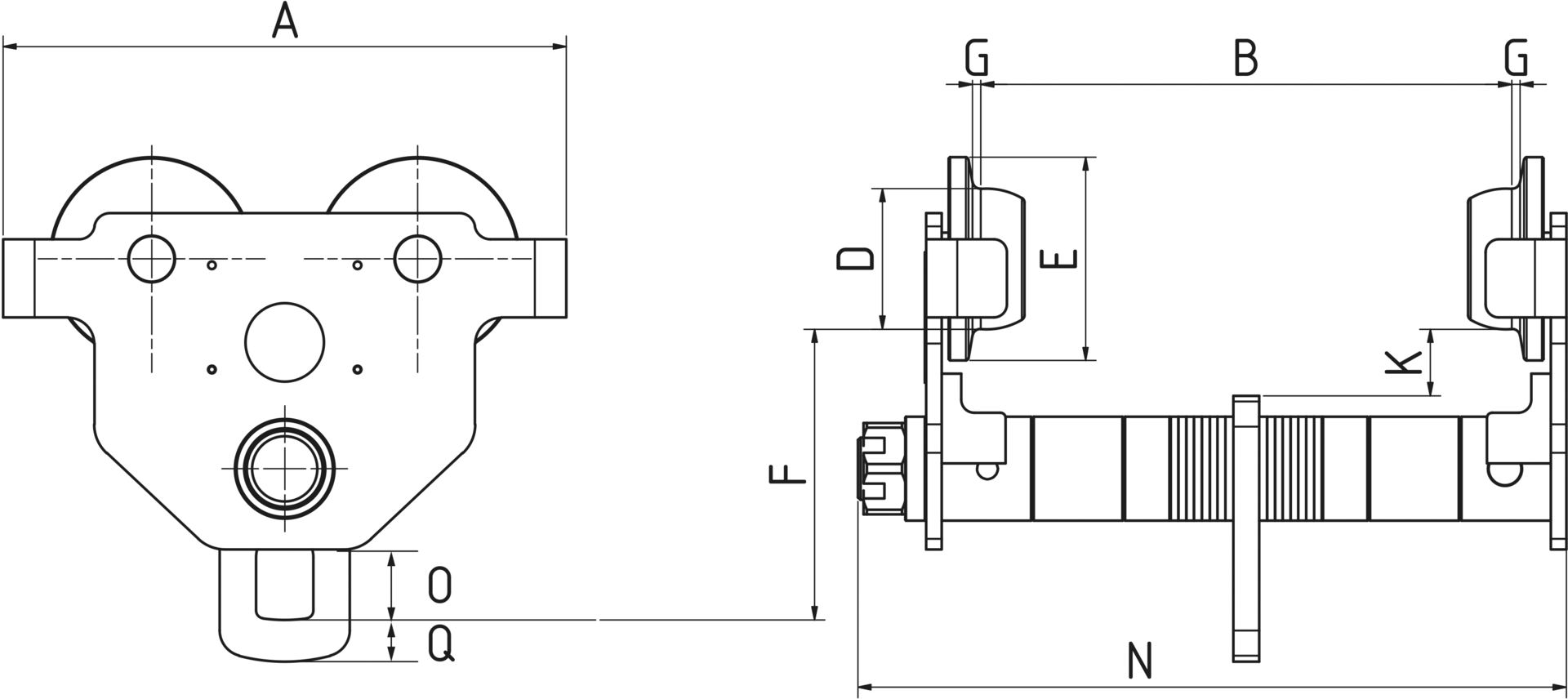 Laufkatze mit Haspelfahrwerk Flansch 100-203mm 3000kg