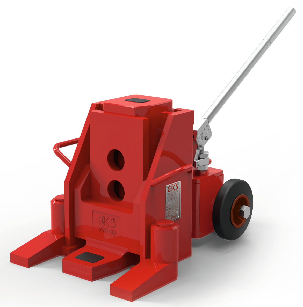 verstellbare Klaue, robust und langlebig, Sicherheitshebelasche für Einhandbedienung mit Rillen, Schwenkfüße für eine nahe Positionierung an der Last verhindern das Kippen des Hebers, Kupplung zum Anschluss einer externen Pumpe erlaubt die Nutzung von 2 oder mehr Hebegeräten, Tragegriff, eingebautes Sicherheitsventil zum Schutz vor Überlastung