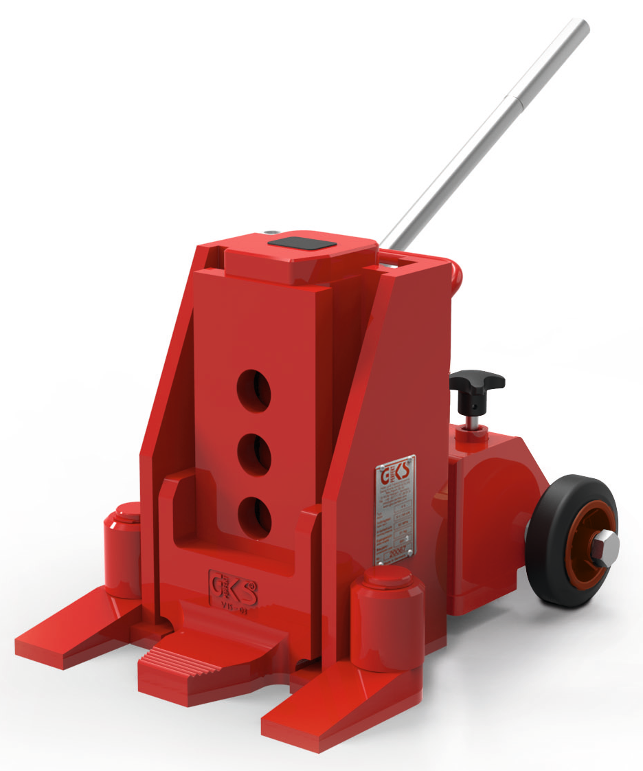 verstellbare Klaue, robust und langlebig, Sicherheitshebelasche für Einhandbedienung mit Rillen, Schwenkfüße für eine nahe Positionierung an der Last verhindern das Kippen des Hebers, Kupplung zum Anschluss einer externen Pumpe erlaubt die Nutzung von 2 oder mehr Hebegeräten, Tragegriff, eingebautes Sicherheitsventil zum Schutz vor Überlastung
