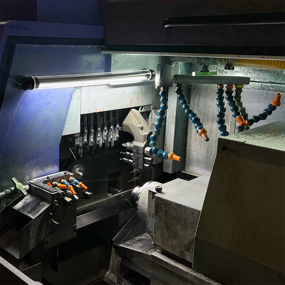 Hochleistungs-LED im Aluminium-Gehäuse, extradicht für anspruchsvollen Einsatz, blend- und flackerfrei, um 360° drehbares Gelenk, gummiummantelte Magnetfüße für flexible Anbringung an Maschine oder Arbeitsplatz