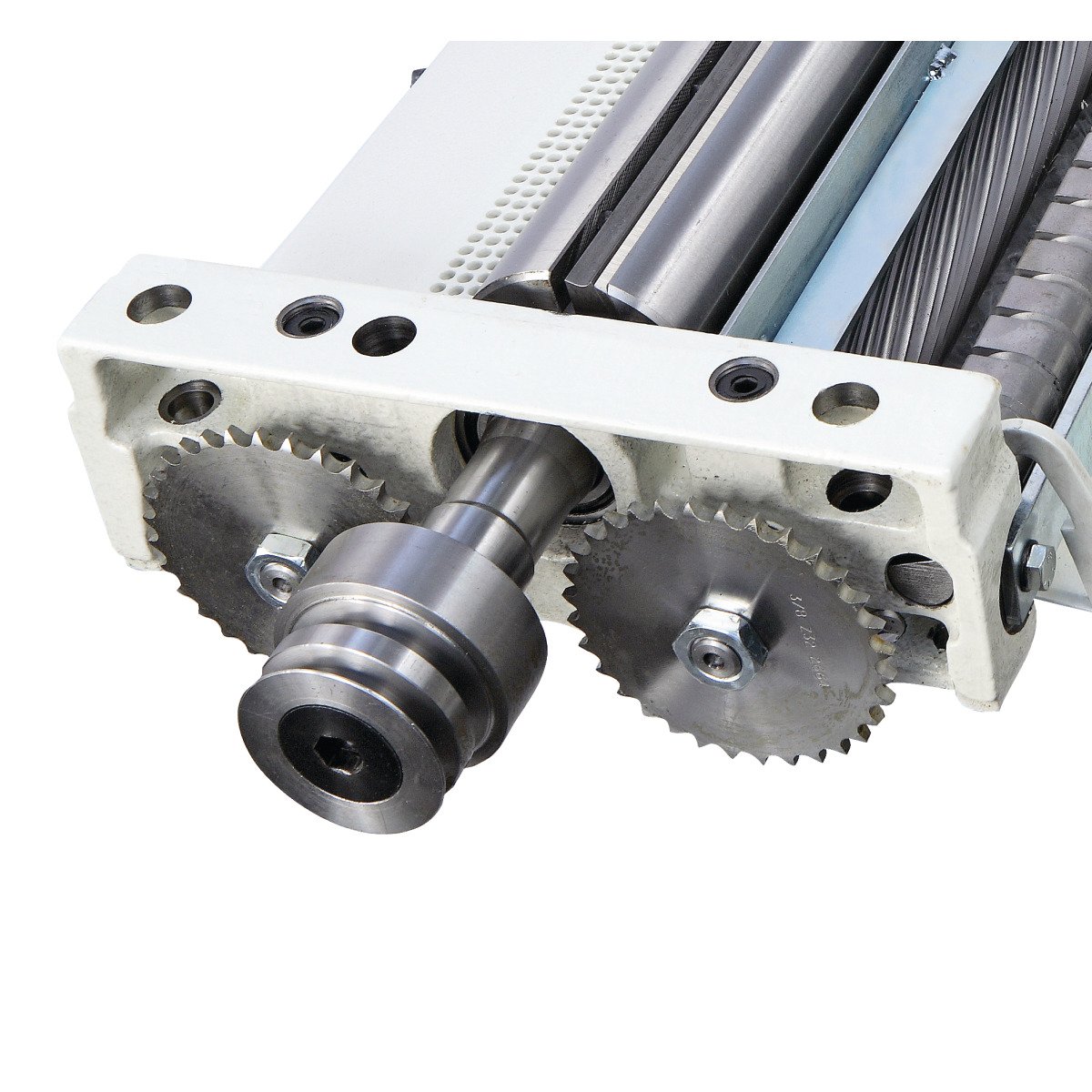 - Schrägverzahnte Stahleinzugswalze für gleichmäßigen Materialeinzug