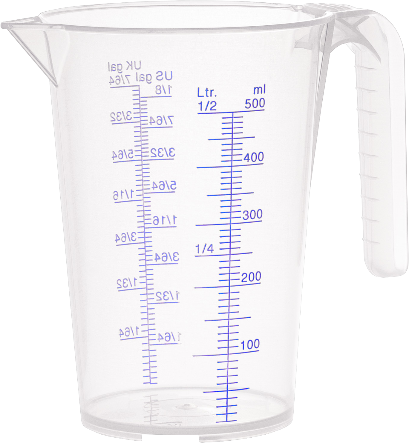 Messbecher aus Polypropylen Skaleneinteilung 10ml Inhalt 0,5l