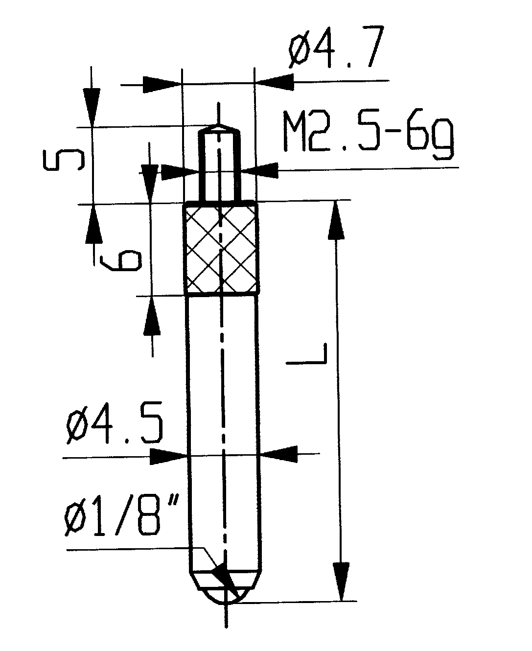 Messtastereinsatz Stahl M2,5 Kugeleinsatz D1/8" L30mm