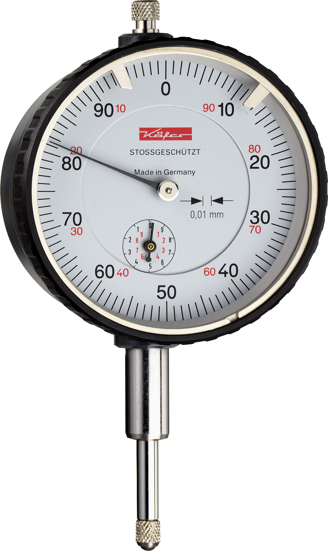 Gehäuse aus hochwertigem Polyamid, sehr geringes Gewicht, drehbarer Kunststoffring zur Nullstellung der Skala, zwei Toleranzmarken, Umdrehungszähler, geläppter Messbolzen, Einspannschaftdurchmesser 8h6