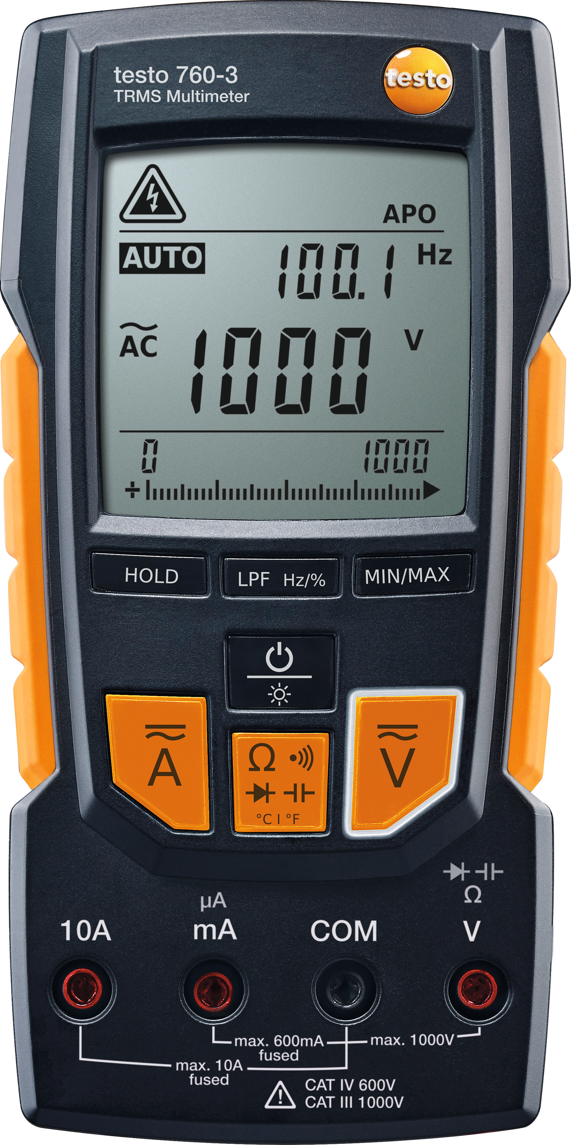 robustes Kunststoffgehäuse mit gummierten Griffbereich, automatische Messgrößenerkennung, verhindert Fehleinstellungen