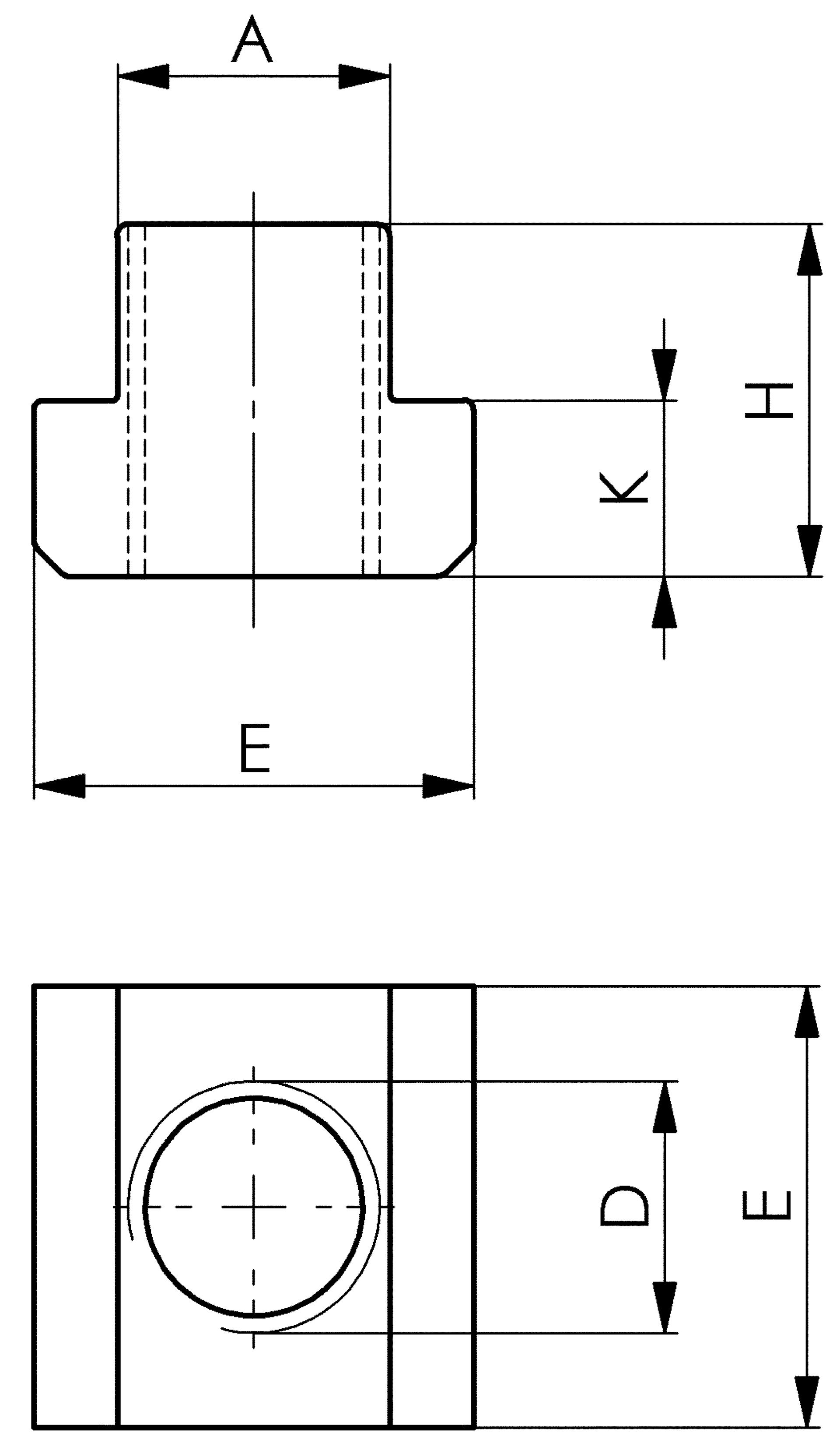| Position | Code | A (mm) | K (mm) | E (mm) | Nut (mm) | H (mm) | D | Anzahl | VE | Preis/VE | |||