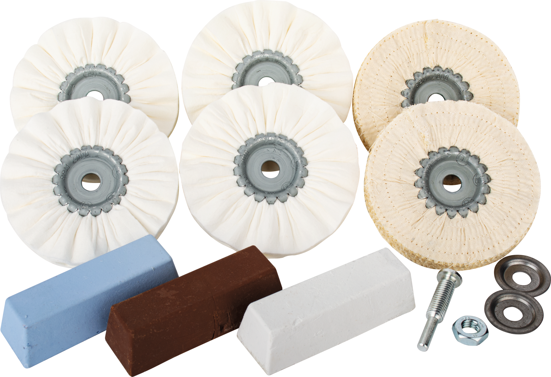 - je 2 Polierscheiben Ø 100 mm Sisal Tuch, hartes Vliestuch und weiches Vliestuch