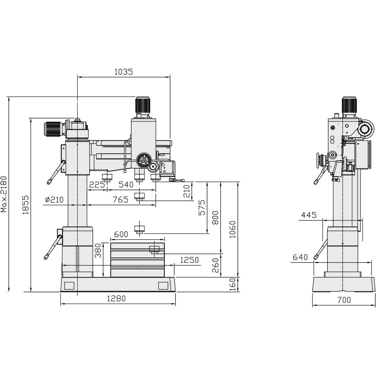 | Abstand Spindel - Bohrtisch max.: | 1060 mm |