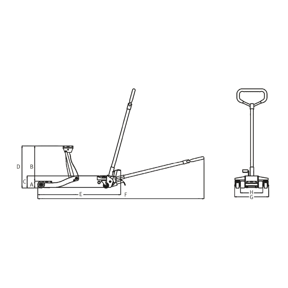 - Zweiteiliger Pumphebel mit Gummigriff zum sicheren und leichten Anheben der Last