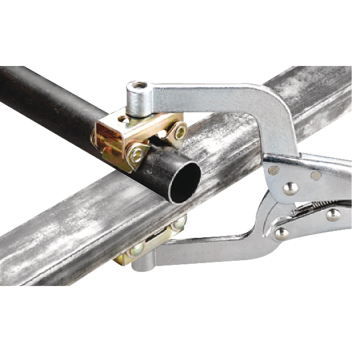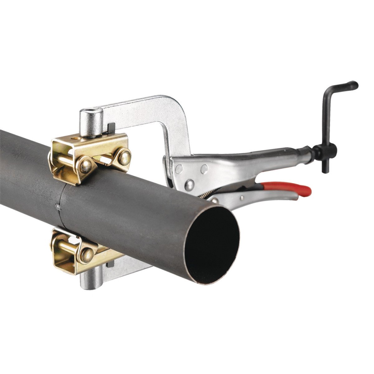 - mit zwei selbstanpassenden V-Spannaufsätzen, dadurch auch geeignet für das Fixieren von Flachmaterial an Rohren