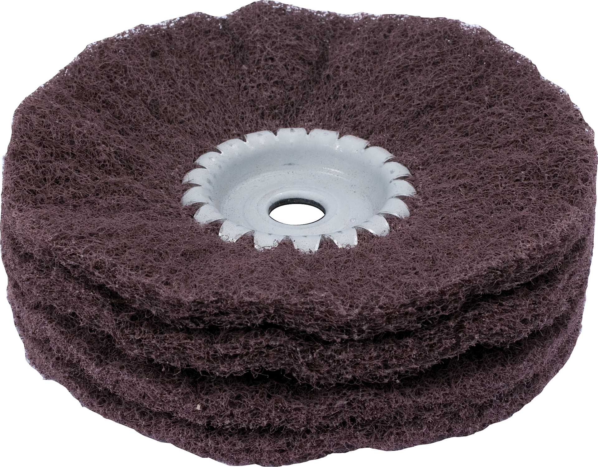 Schleifvlies A6, geraffte Faltung um einen Metallkern montiert, 4-lagig