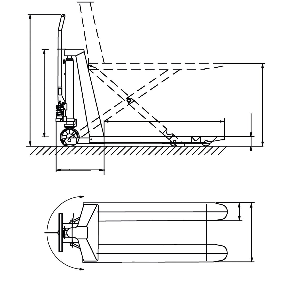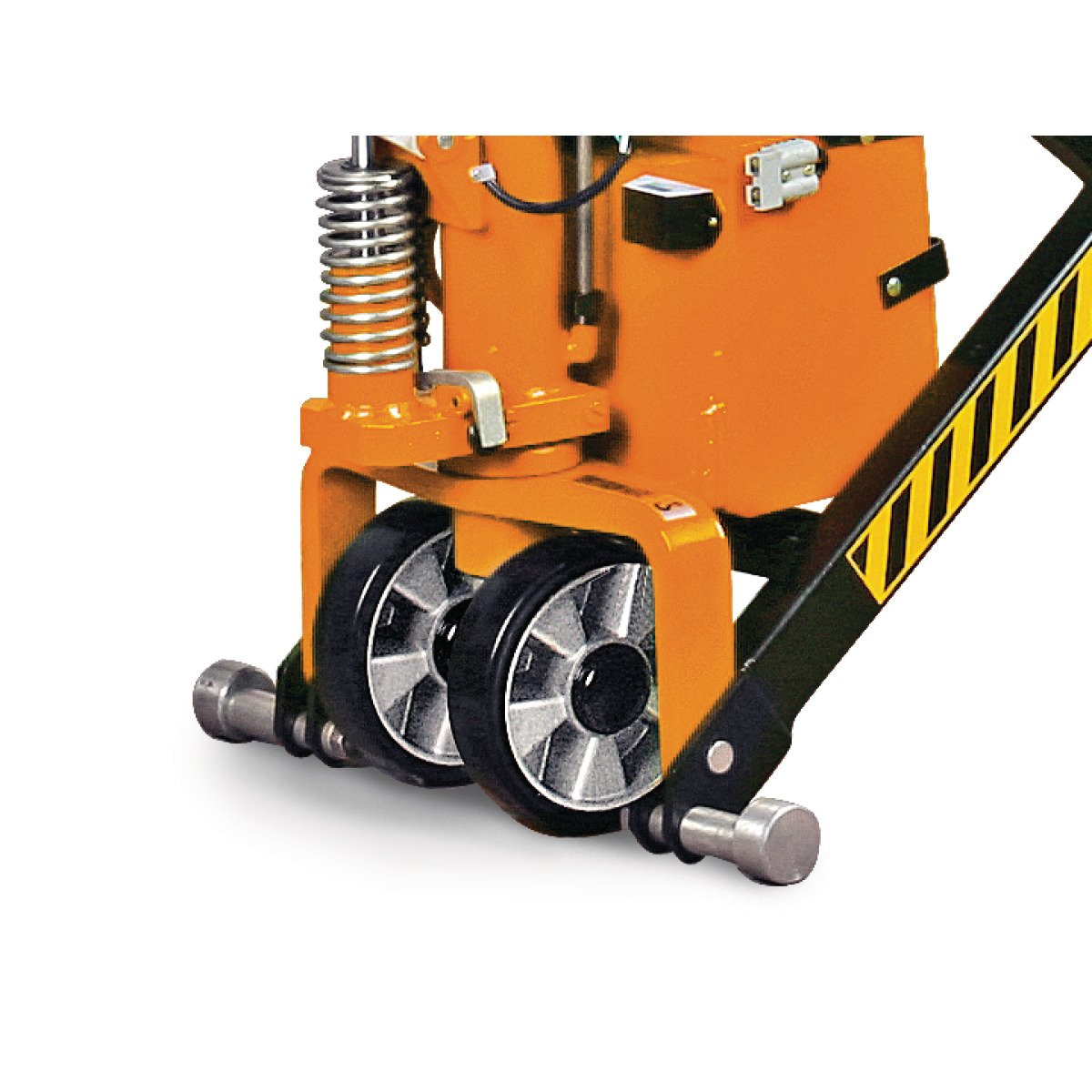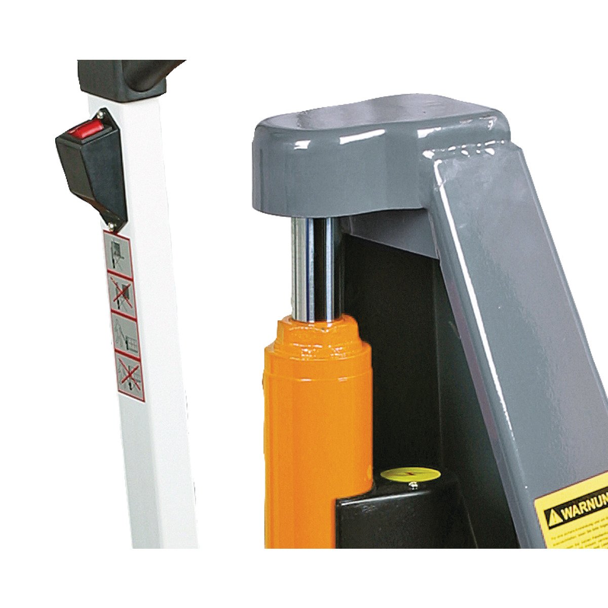 - Beim Aufpumpen stützt sich der Hubwagen ab einer gewissen Höhe auf die serienmäßigen Stützfüße ab