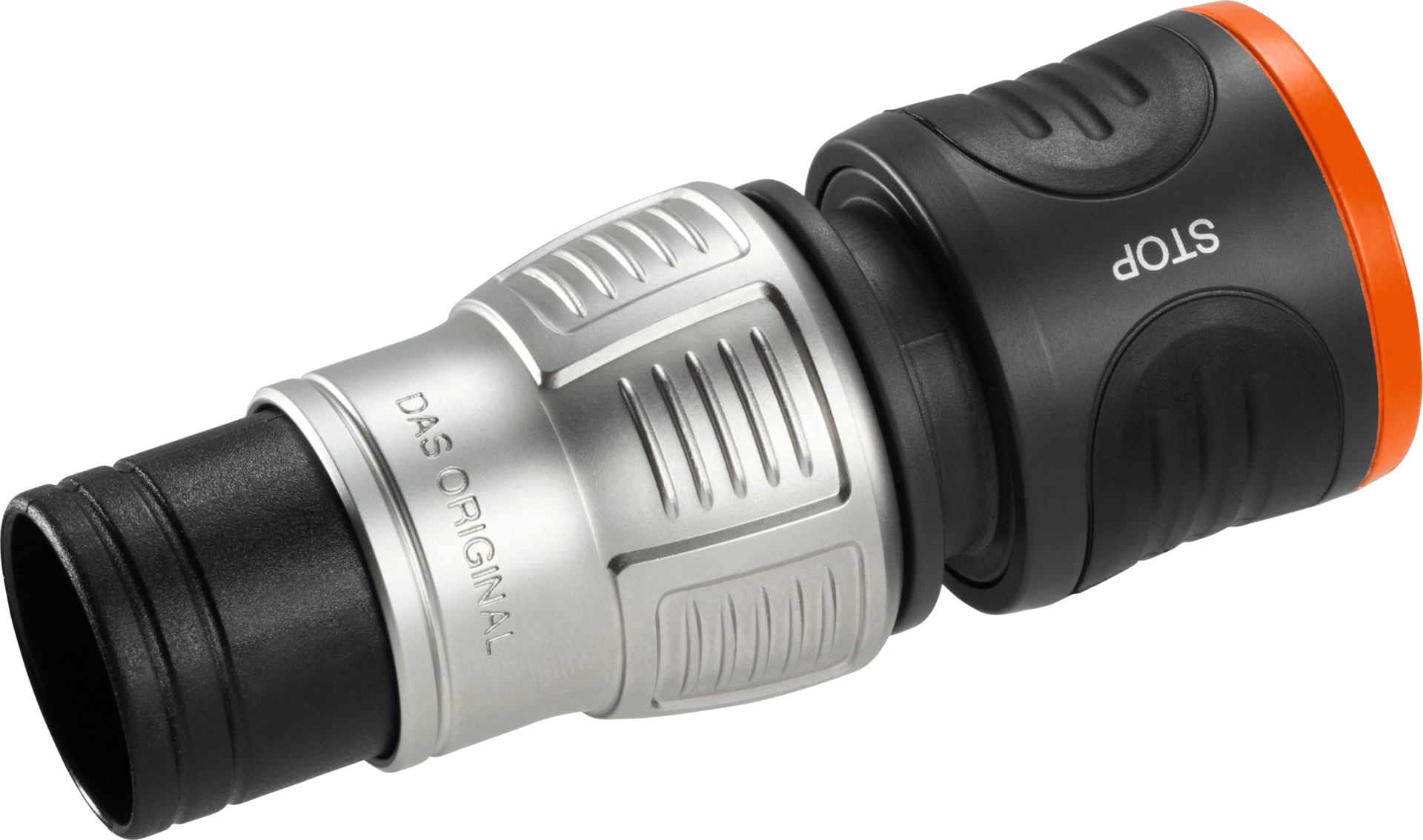 hohe Schlauchhaltekraft durch stabile Klemmmutter, geriffelte Griffmulde