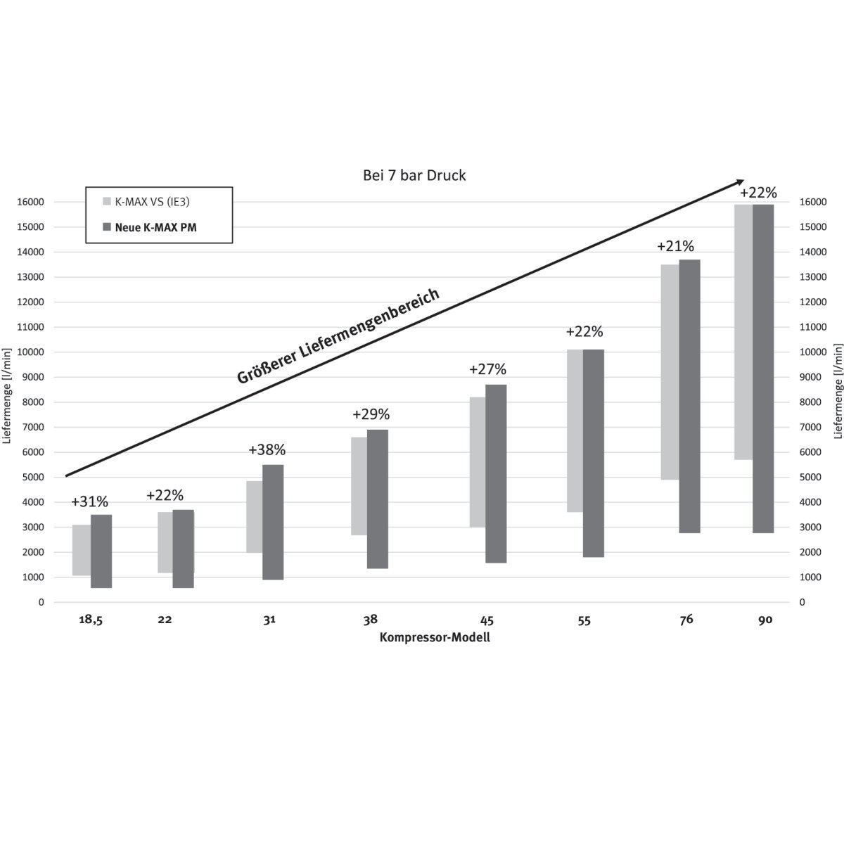 - Liefermenge des Kompressors passt sich dem tatsächlichen Verbrauch an