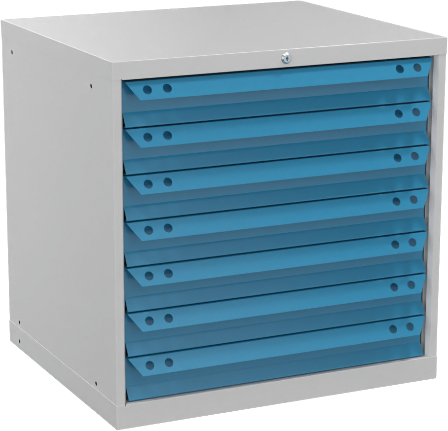 Schubladenschrank Höhe 800mm mit 7 Schubladen 200kg RAL7035/5012 T695 x B805mm