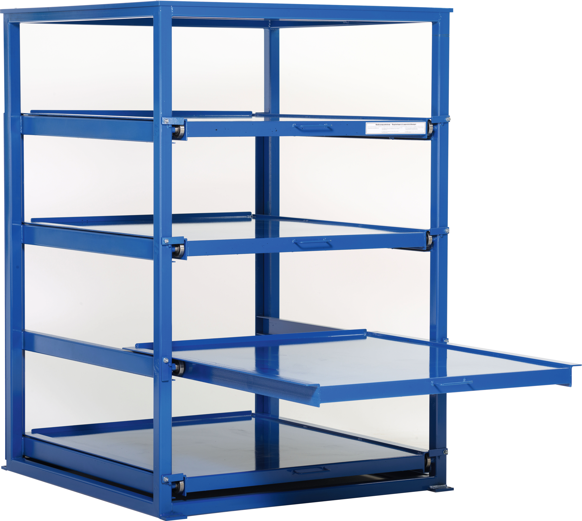 Schwerlast Auszugsregal Breite 1270mm Tiefe 905mm Höhe 2110mm RAL 5010 Auszug 66% Fachlast 1000kg