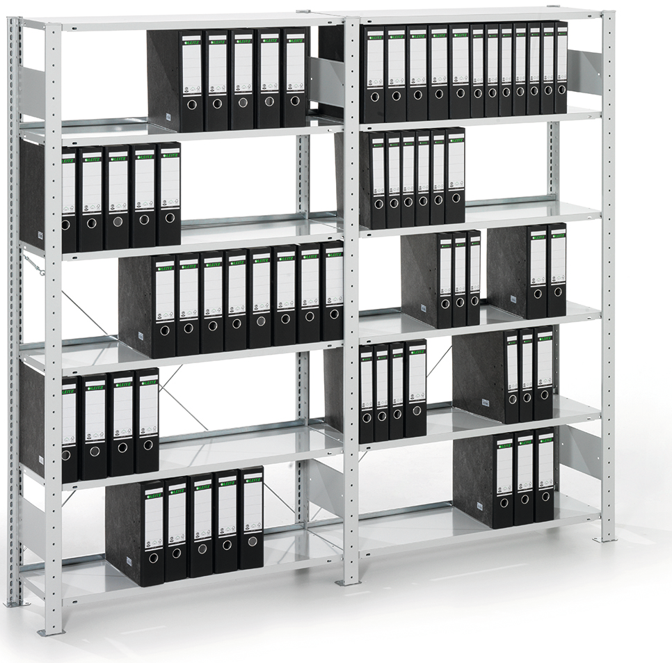 Steckregal Ordner einseitig Grundregal COMPACT verzinkt 7 Fachböden 80kg H2200 x T300 x B1000mm