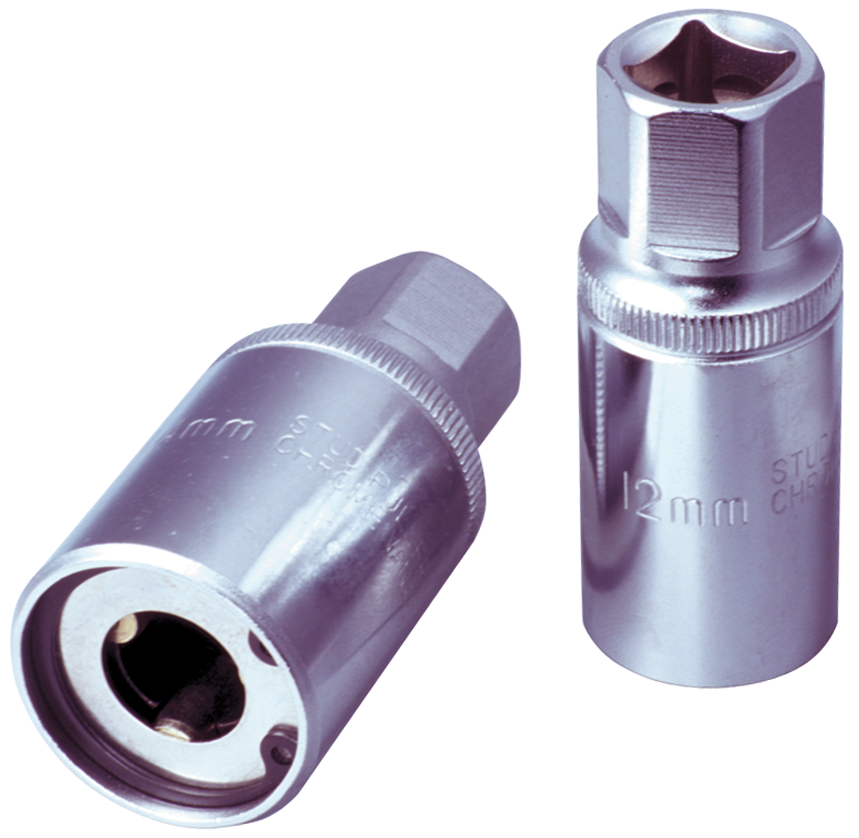 Vierkantantrieb 1/2" nach DIN 3120/ISO 1174 mit Kugelarretierung, mit Außensechskantantrieb SW 21, mit Rechts- und Linksspannfunktion, sicherer Halt durch je drei Rollwalzen, Ein- und Ausdrehen ohne umständliches Verkontern zweier Muttern auf dem Bolzen, auch für überlange Stehbolzen geeignet - da durchgehend gebohrt, hochglanz verchromt, Chrom-Vanadium