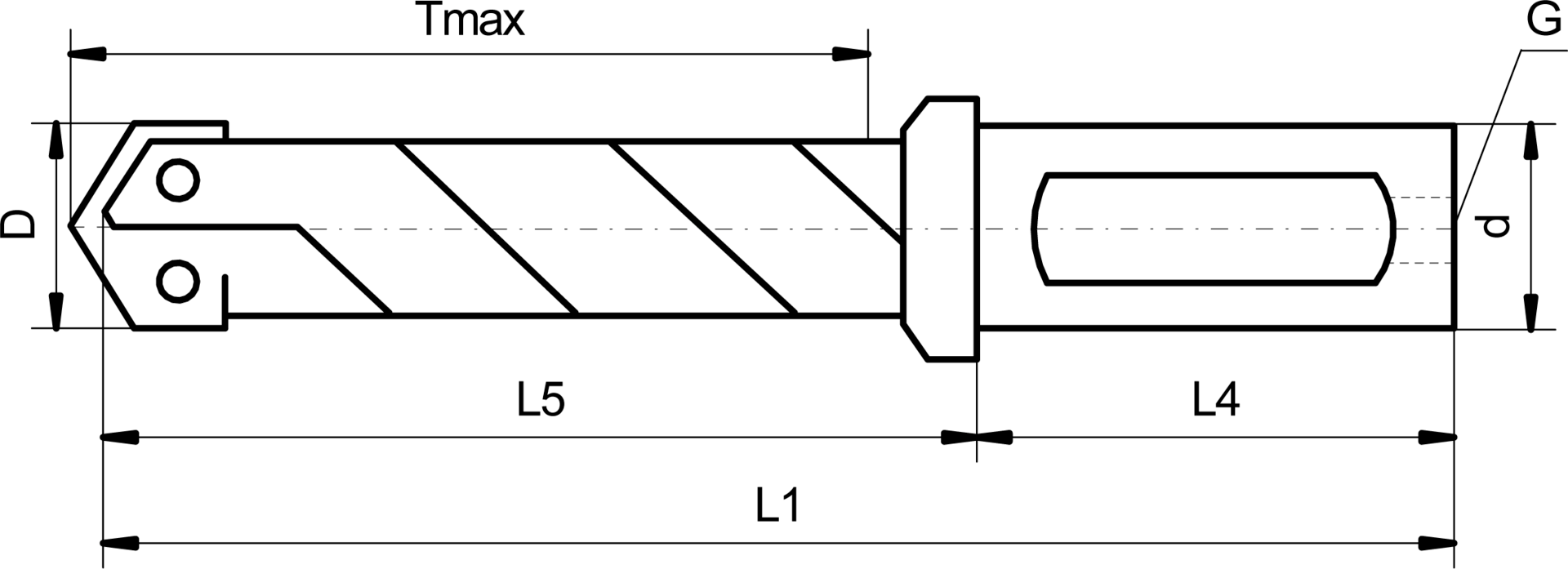 | Einsatz: | auf CNC-Bearbeitungszentren im Weldon-Spannfutter und in anderen zylindrischen Spannmöglichkeiten, durch die passende Wahl der Schneideinsätze auch bei instabilen Verhältnissen einsetzbar, bei größeren Bohrtiefen ist das Setzen einer Pilotbohrung mit |