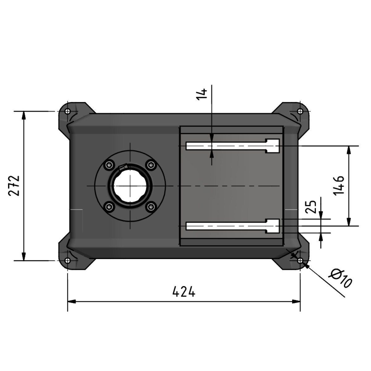 - Präzise gearbeiteter, stabiler Bohrtisch mit 2 diagonal verlaufenden T-Nuten und umlaufender Kühlwasserrinne