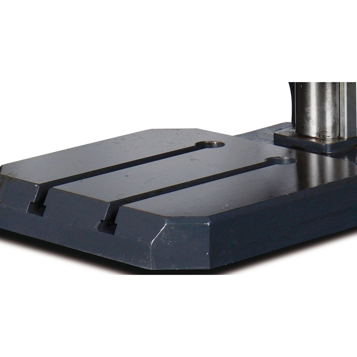 - Präzise gearbeiteter Bohrtisch mit parallel verlaufenden T-Nuten