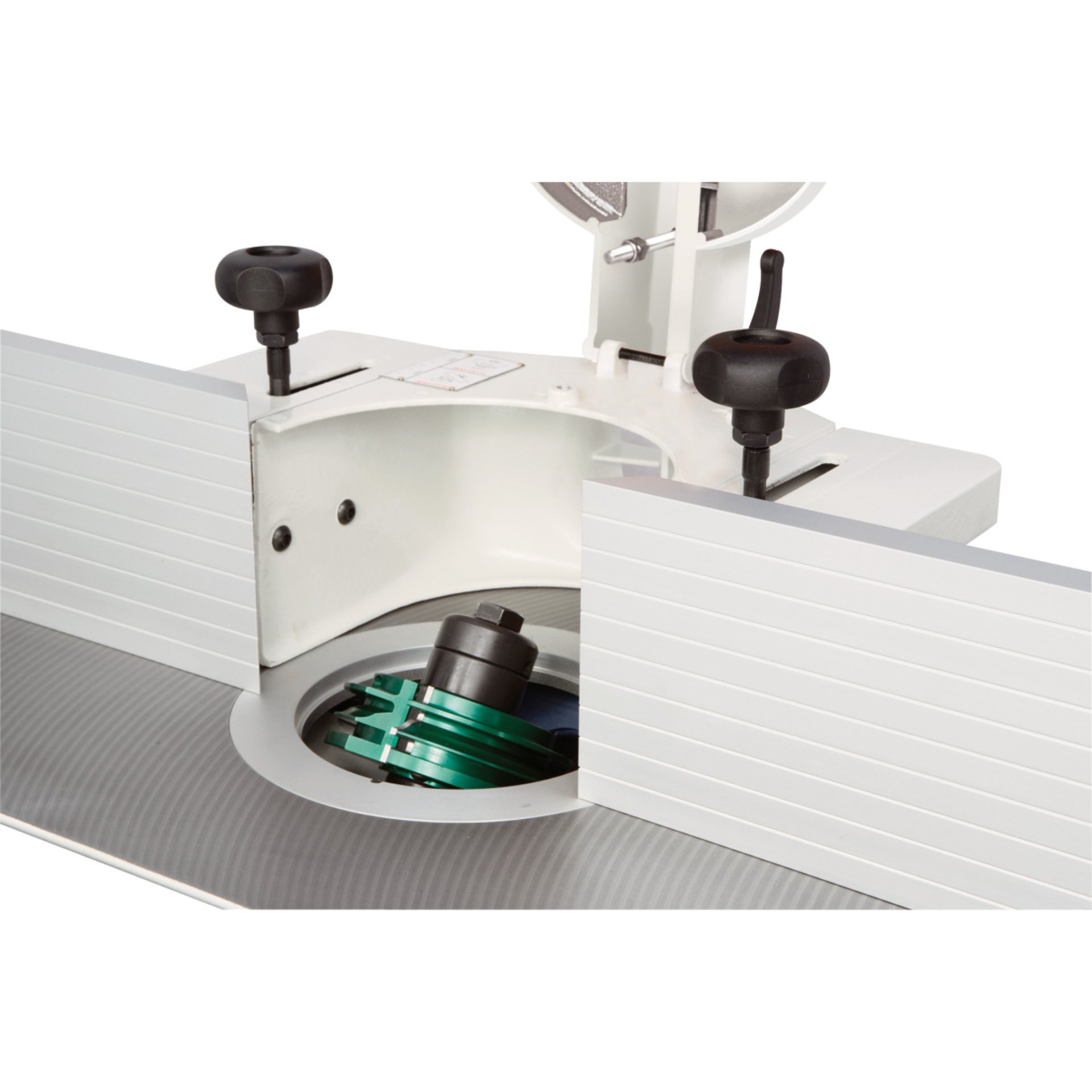 - Eine große Frästischöffnung ermöglicht auch den Einsatz von größeren Abplattfräsern und Zapfenschneid- und Schlitzwerkzeugen über und unter dem Tisch