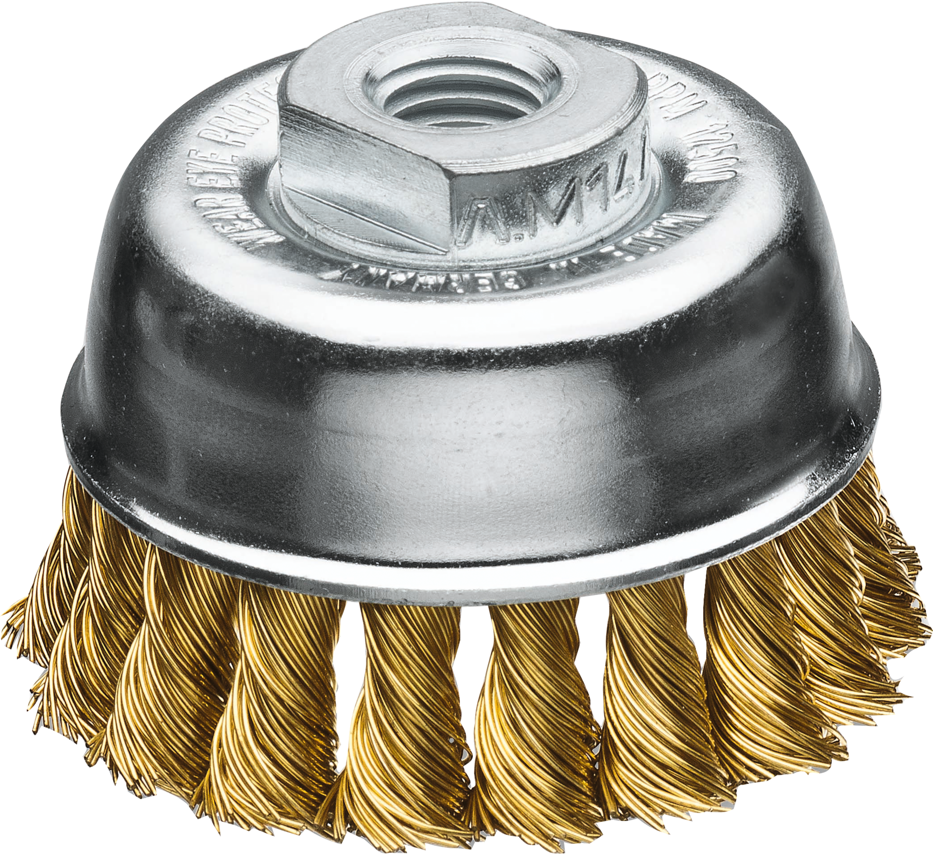 Topfbürste für Winkelschleifer vermessingter Stahldraht mit Gewinde M14x2 D65x0,5mm