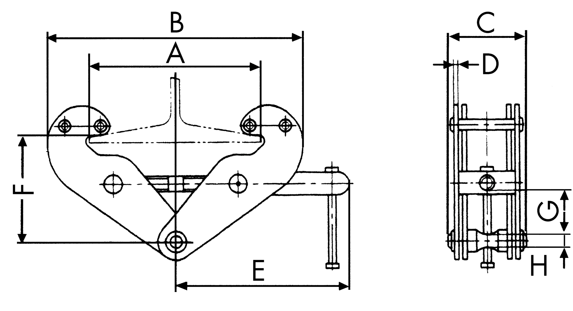 | Position | Code | Tragfähigkeit (kg) | D (mm) | Flanschbreite (mm) | Greifbereich (mm) | E (mm) | F (mm) | G (mm) | C (mm) | H (mm) | Anzahl | VE | Preis/VE | |||