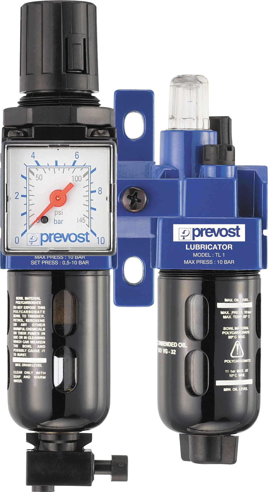 Kombi Wartungseinheit 1/2" Eingangsdruck 0,8-10bar, Ausgangsdruck 0,5-8,5bar
